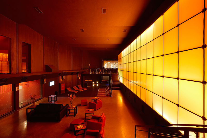 Na entrada, a cortina de veludo relembra o cinema. Internamente, o lounge recebe grande painel retroiluminado projetando uma luz âmbar que o torna mais intimista.